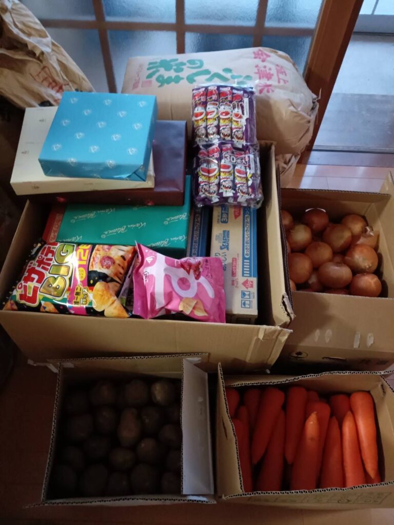 ご寄付を頂きました‼ 2026年1月7日 2025年12月24日に喜多方商工会議所様より寄付金、お米、野菜、お菓子を沢山頂きました。 ありがとうございました。 商工会議所の方6名が来所してくださり、活動を少し見学していかれました。